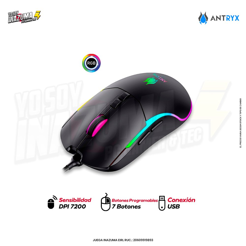 El Antryx M660 es un mouse gaming diseñado para brindar precisión, estilo y comodidad en cada partida. Con sus 7 botones programables, sensor óptico de hasta 7200 DPI y retroiluminación RGB personalizable, se adapta tanto a gamers casuales como a entornos competitivos.
