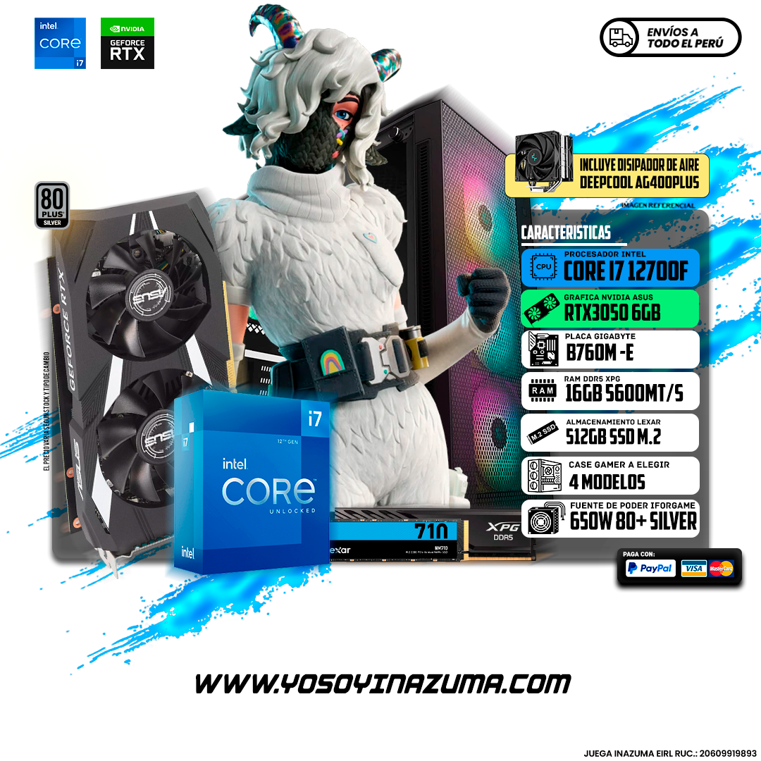 PC GAMER INTEL CORE I7 12700F + RTX3050 6GB (ACTUALIZADO 01/2026)